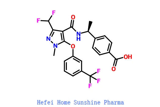 S) -4-(1-(3-(дифторуметил) -1-метил-5-(3-(трифторуметил)фенокси) -1-H-пиразол-4-карбоксамидо) этил) бензоевая кислота;