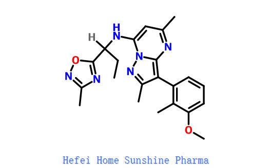 3- ((4-Мето-кси-2-метилфенил)-2,5-диметил-Н-[(1С)-1-(3-метил-1,2,4-оксадиазол-5-ил) пропил]пиразол[1,5-а]пиримидин-7-амин;Verucerfont;