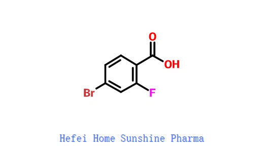 4- бром-2-фторбензовая кислота является органическим промежуточным веществом, которое может быть получено из 2- фтор-4- бромтолуена в качестве сырья путем окислительной реакции.Сообщалось, что он может использоваться для приготовления промежуточных препаратов энзалютамина и ключевых промежуточных препаратов винетотека.. 4-Бро-мо-2-фторбензоевая кислота является галогеновым производным бензоевой кислоты.4- Бро- мо-2- фторбензоевая кислота используется в синтезе фармацевтически значимых продуктов, таких как ингибиторы d- аминокислотной окисления..