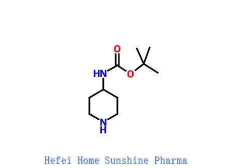 4- ((N-tert-butoxycarbonylamino) piperidine, является промежуточным средством для синтеза различных фармацевтических и биологически активных соединений, включая ингибиторы и терапевтические средства.Используется для синтеза производных дифенилпурина в качестве периферически селективного каннабиноидного рецептора 1 Антагонисты.